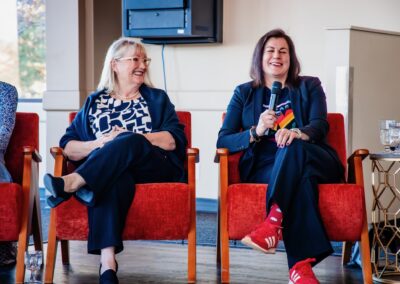 The panelist, Kelsey Hahn, CEO & Co-founder of Monark, Barbara Simic, President & CEO of The Educational Partnership Foundation and Lara Murphy, Co-founder, President & CEO of the Calgary Wild FC delivered powerful testimonials of what it takes to achieve remarkable things and the importance of resilience in leadership. This event was special and left the attendees inspired, with a broader sense of what is possible and with new connections.
